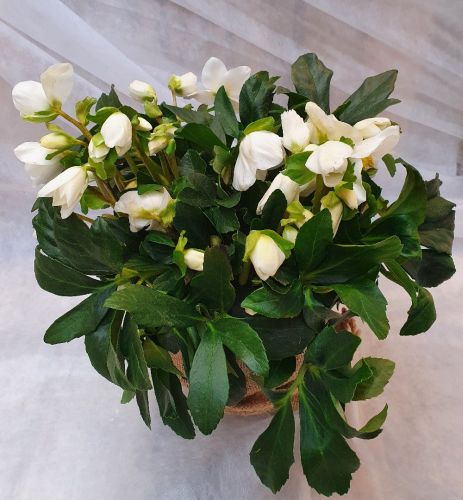 Christrose im Topf ca. 30 cm Durchmesser als Geschenk verpackt