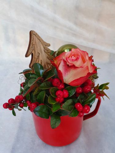 Rebhuhnbeere im roten Gefäß ,hübsch dekoriert